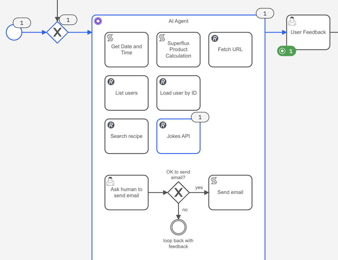 - Learn more about Camunda agentic orchestration and the AI Agent connector.
